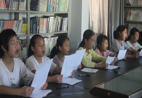 志愿者们首先向小朋友做出示范,富有感情并且读音清晰地朗读《少年中国说》,随后一句一句的领着小朋友们诵读,一字一句纠正小朋友们的字音。为了激励小朋友们更加积极,志愿者们灵机一动,采取分组的方式让小朋友们进行小组pk,专属小小少年的少年气、不服输的精神使小朋友们卖力地大声朗读。小朋友们清脆的声音使人心情愉悦,童音诵读着中国经典,传承着专属中国的文化,不忘初心让中华文化一代代源远流长。