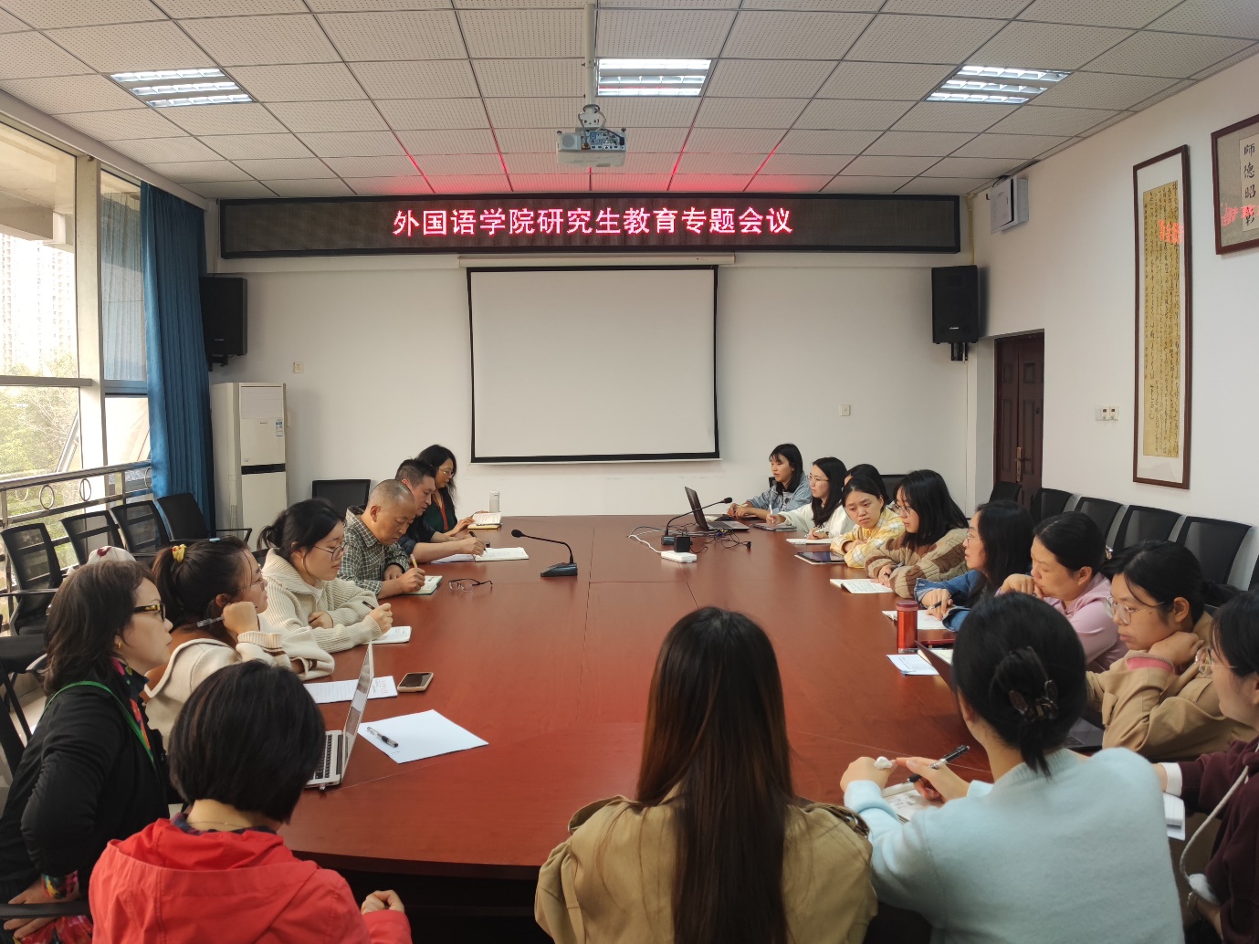 10月22日下午,外国语学院召开学科教学(英语)专业研究生教育教学专题会议,总结教育教学经验与成果,研讨改进措施。会议由李雪顺院长主持,分管副院长、导师团队、授课教师及全体研究生参与。