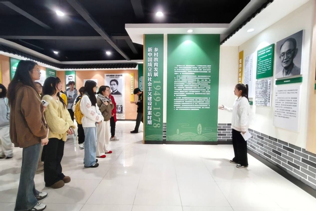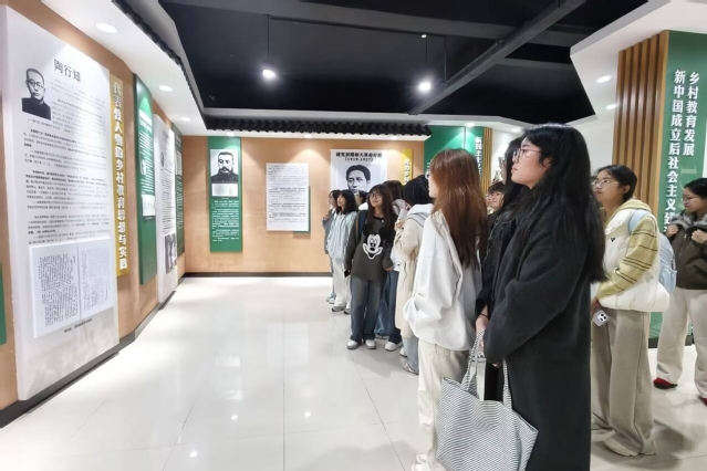 为深入了解我国乡村教育的发展历程、时代变迁与实践成果,切身感受教育在乡村振兴战略中的磅礴力量,11月13日晚,我院组织30名学生前往崇仁楼一楼乡村教育馆开展了主题参观活动。