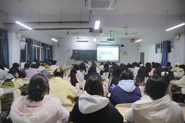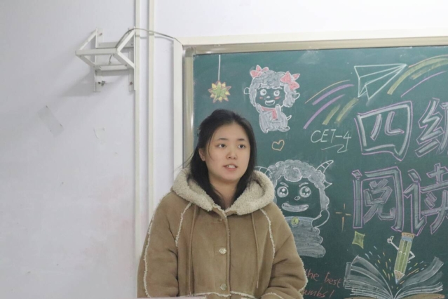 为助力学生备战英语四级考试,11月18日晚,外语交流协会于诚意楼310举办了四级冲浪室之阅读与翻译分享会。2023级英语师范1班王如星担任主讲人,全校学生积极参与。