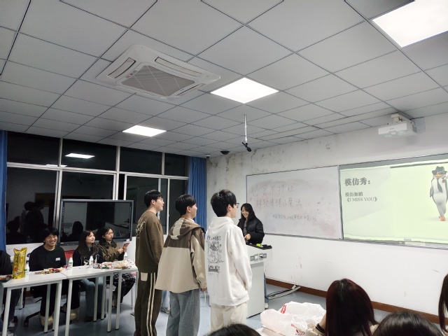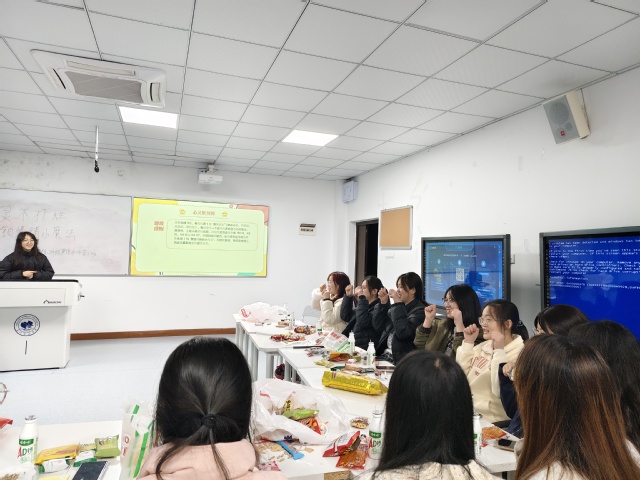 “压力纸条盲投”环节为同学们搭建了释放烦恼的“秘密通道”。大家拿起笔,在便签纸上匿名写下“作业堆积如山,熬夜成常态”“担心期末考失利,辜负期待”“社团与学习难以平衡,感到分身乏术”等真实困扰,随后郑重地将纸条投入密封盒中。在紧接着的“压力解码”环节,主持人逐一抽取纸条念出内容,有类似困扰的同学便举手示意。当听到“怕口语表达不好,课堂不敢发言”的纸条内容时,近半数同学举起了手,现场瞬间形成情感共鸣。“压力退退退!”随着主持人带头高喊,全班同学齐声附和,响亮的口号将积压的负面情绪彻底释放,现场气氛既治愈又振奋。
