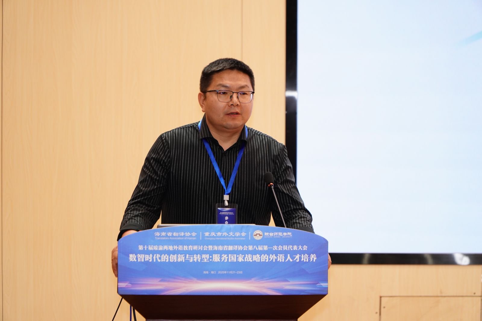 2025年11月22日,外国语学院赵国月博士在第十届琼渝两地外语教育研讨会上作主旨报告,以《课程思政背景下外语教学中的几对矛盾》为题,深入剖析了当前外语教育在思政融入进程中面临的关键挑战与破解路径,引发与会专家热烈反响。同时,赵国月博士还主持了海南大学外国语学院毕宙嫔教授的主旨报告,并做了精彩点评。