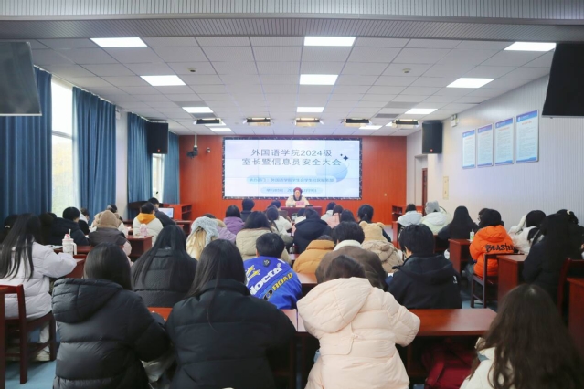 为进一步规范寝室管理,提升学生对宿舍安全隐患的识别与防范能力,12月9日,我院于钩深楼501全境实训室开展了2024级室长暨信息员安全大会,辅导员邓巧担任主讲人,2024级全体寝室长参会。