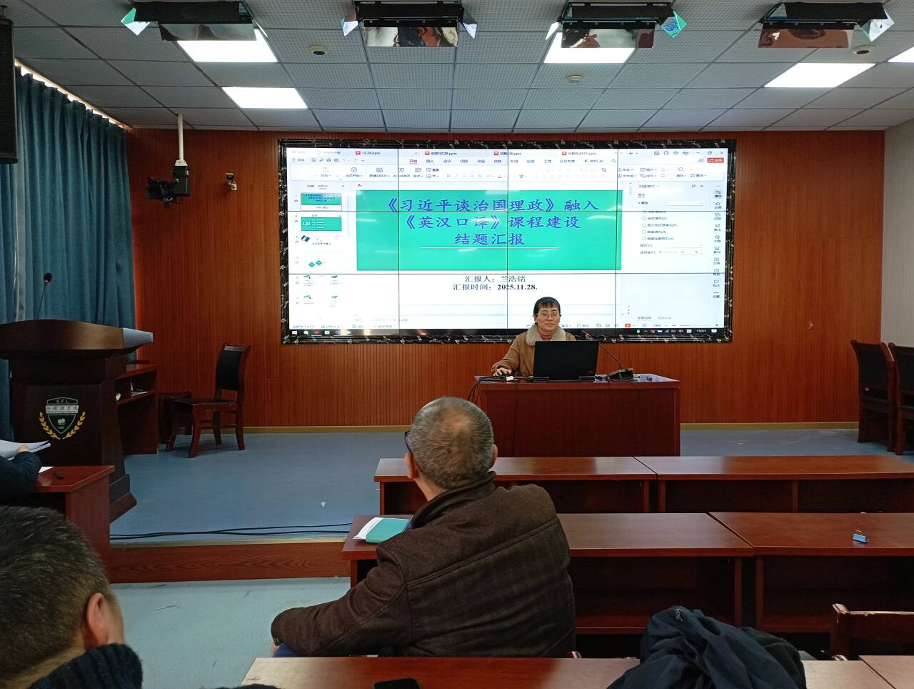 评审专家组认真听取每一位负责人的汇报,细致审阅相关材料,结合外语教学领域的前沿趋势与实践需求,展开了专业、深入的点评。张玉波教授从研究成果的实用性与示范性出发,强调教改项目需紧密贴合课堂教学实际,真正解决一线教学中的痛点难点;李小春博士针对项目研究方法的科学性提出建议,鼓励引入多元化研究手段提升成果可信度;孙小静博士则聚焦成果转化与推广,建议各项目组强化成果的可操作性,为后续教学应用奠定基础。专家们既肯定了各项目的研究价值与阶段性成果,也精准指出了研究中存在的不足,并为项目的进一步完善与推进提出了极具针对性的改进建议。