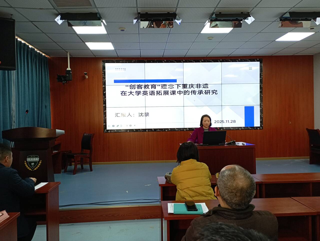 为深化教育教学改革,强化项目研究质量,提升英语专业教学水平,2025年11月28日下午,外国语学院召开校级教改项目结题验收暨2025年度立项教改开题会。本次会议兼具项目评审与专业教研双重属性,既是对过往教改成果的检验总结,也是对未来教研方向的规划部署,学院张玉波教授、李小春博士、孙小静博士组成评审专家组,相关项目负责人及英语(师范、非师范)专业全体教师参会。