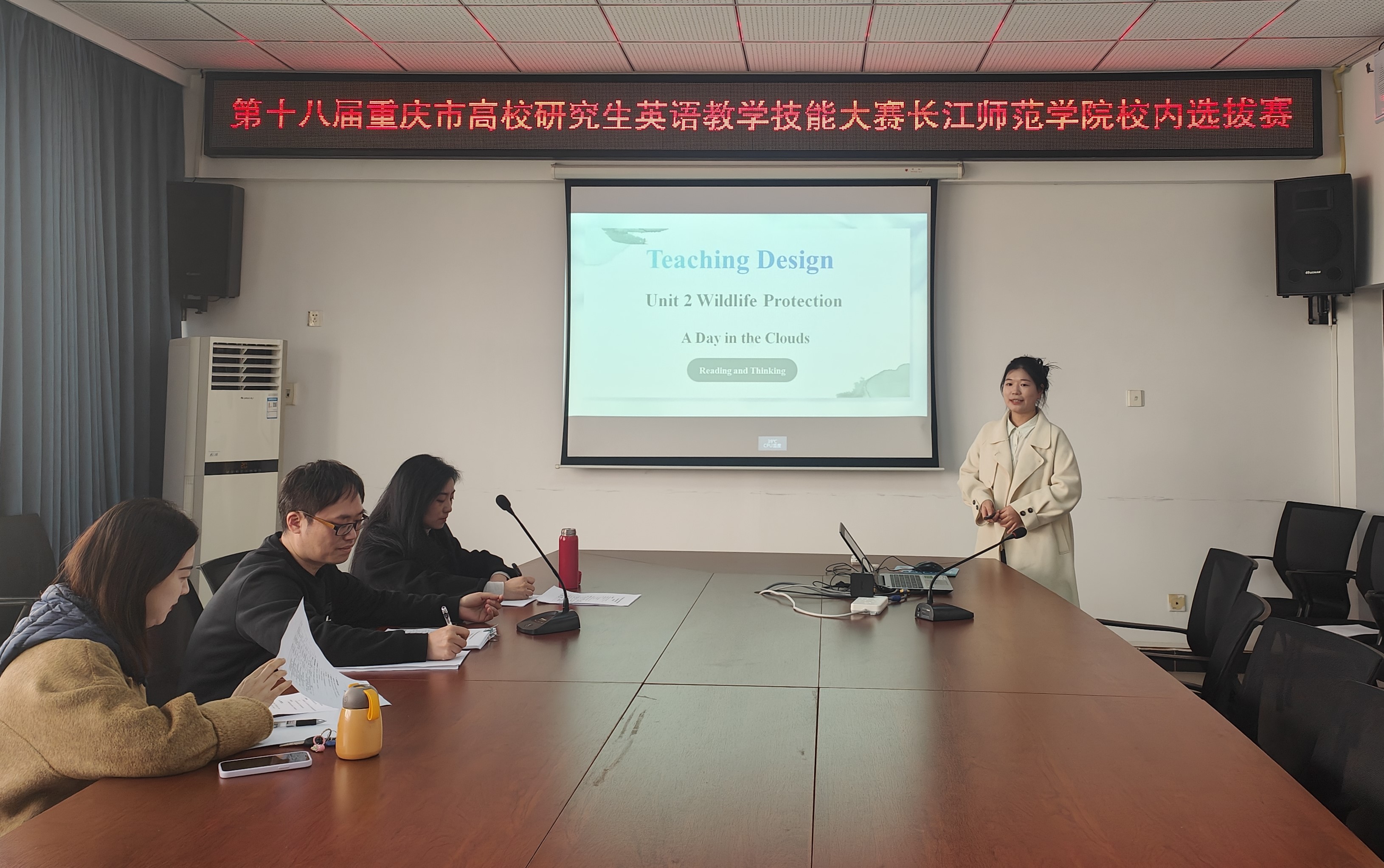 为深化英语教学改革,提升研究生英语教学实践能力与综合素养,搭建以赛促学、以赛促教的交流平台,近日,第十八届重庆市高校研究生英语教学技能大赛校内选拔赛在我校成功举办。本次赛事由外国语学院主办,吸引了14位优秀研究生同台竞技。