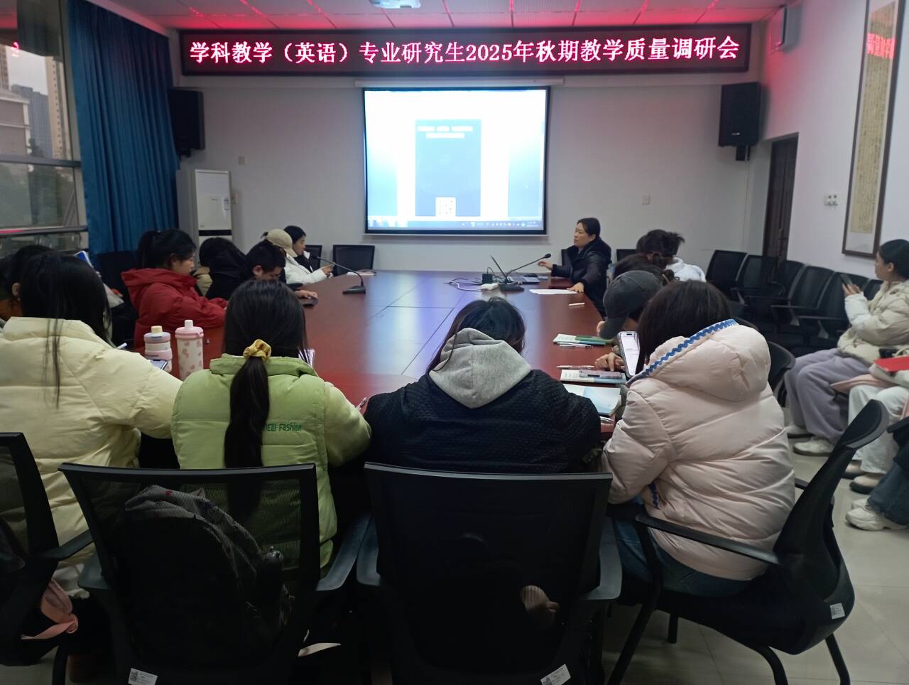 此次教学质量调研会搭建了学院与研究生之间的沟通桥梁,为学院精准掌握教学运行情况、及时优化教学管理举措提供了重要参考,也为进一步提升学科教学(英语)专业人才培养质量奠定了坚实基础。