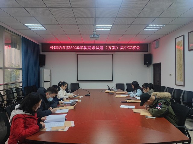 为贯彻落实学校教育教学质量保障要求,深化考核评价改革,从源头上严把考核质量关,外国语学院于近日组织开展了2025-2026学年第一学期所有课程的试卷与考核方案集中审核工作。学院高度重视本次审核,成立了由教学副院长蒋朝霞牵头,各专业负责人及教学督导组成的专项审核专家组。