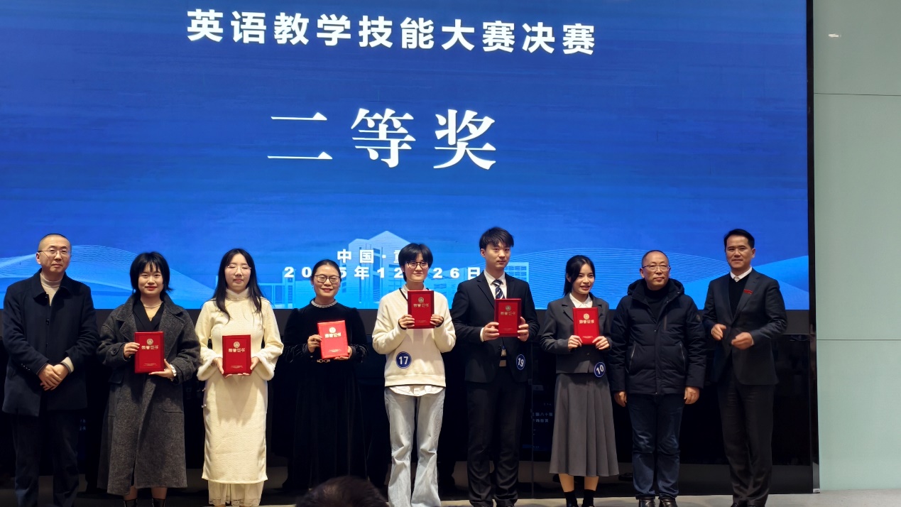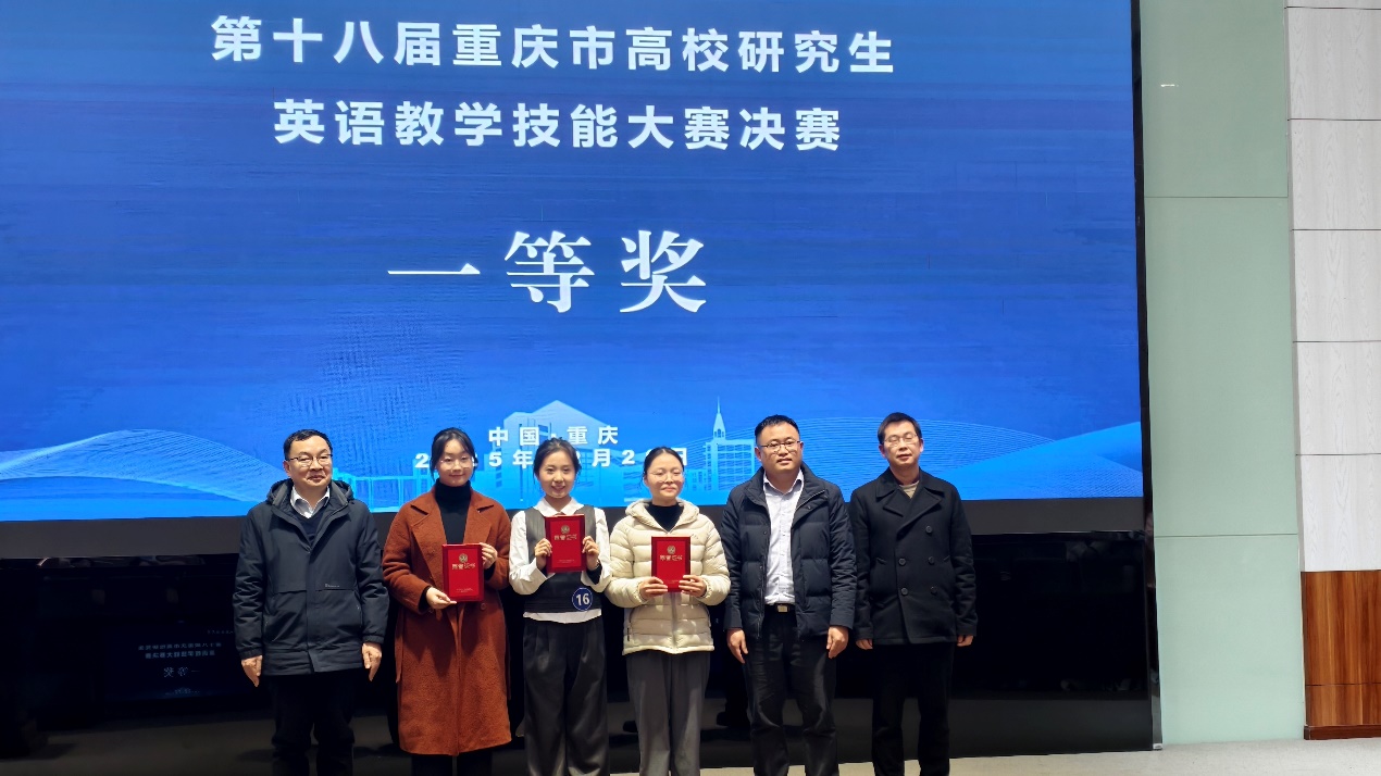 2025年12月26日,第十八届重庆市高校研究生英语教学技能大赛决赛在四川外国语大学圆满落幕。本赛事由重庆市教育委员会主办,来自重庆大学、西南大学等10所高校的20名研究生选手同台竞技。我院徐迎同学以优异表现斩获一等奖,李俊杰同学荣获二等奖,为学校和学院赢得荣誉。备赛过程中,李芬芳、陈杰两位教师全程指导,助力选手快速提升。