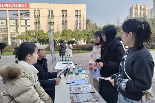 为进一步强化学院人才培养与企业需求的适配度,精准对接企业人才需求,扎实推进毕业生就业工作,1月6日,我院联合数学与统计学院举办2026届毕业生双选会。此次招聘会聚焦教育类、外语类核心岗位需求,吸引了重庆优跃教育科技有限公司、启巍教育咨询有限公司等24家优质用人单位齐聚校园,为毕业生打造高效求职通道,实现人才供需的双向奔赴。