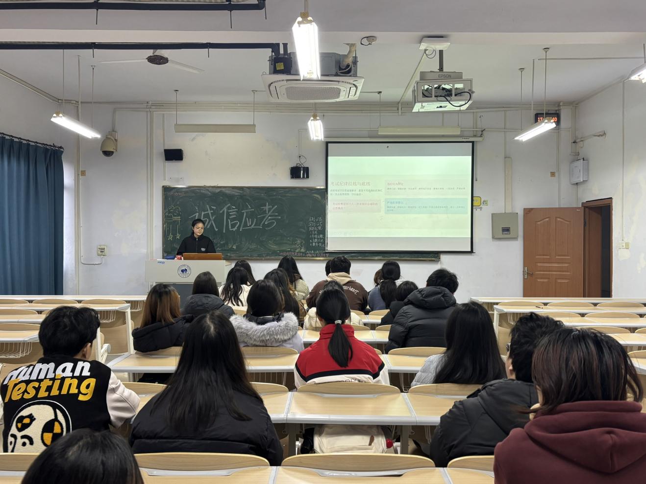 为引导学生端正考试态度,1月3日晚,外国语学院组织各班级召开了考风建设动员会。各班动员会由班级学习委员主持,全体同学参加。动员会以“诚信考试,从我做起”为主题,深入阐述了诚信做人的根本原则和诚信考试的重要意义。学委们向班级同学详细宣讲了学校关于考试纪律的各项规定,特别是考试违纪、作弊行为的认定标准及其带来的严重后果,包括课程成绩无效、纪律处分、记入档案直至影响学位授予等,使每一位同学对考试“红线”有了清醒认识。