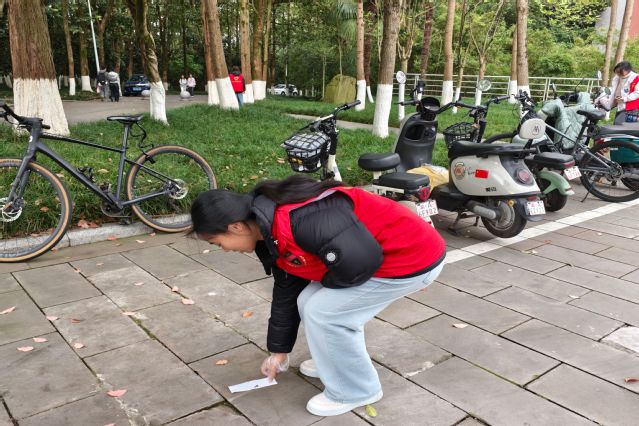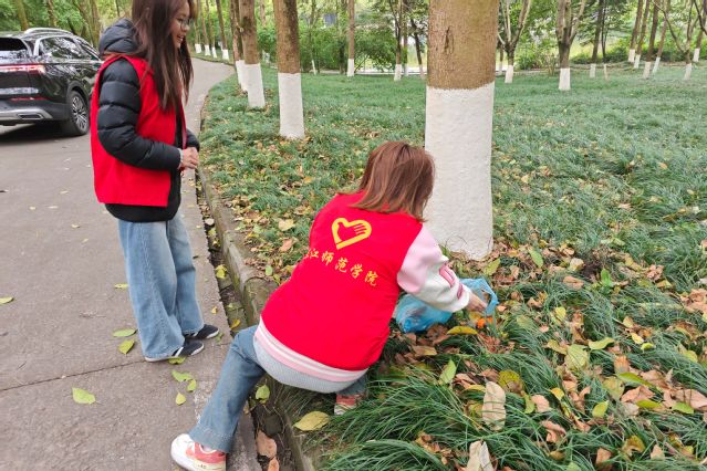 活动当天,志愿者们准时在指定地点集合,随后迅速分成两组,明确分工、各司其职,分别前往钩深楼周边及图书馆周边区域开展环境清洁工作。活动中,志愿者们手持垃圾袋、佩戴清洁手套,认真捡拾地面上的纸屑、塑料袋、烟头等各类垃圾,以实际行动维护校园整洁。活动接近尾声时,全体志愿者在图书馆前集合,有序归还志愿服装,并将收集的垃圾统一分类投放至垃圾桶。整个过程组织有序、配合默契,充分展现了我院学子良好的精神风貌、责任意识与环保素养。