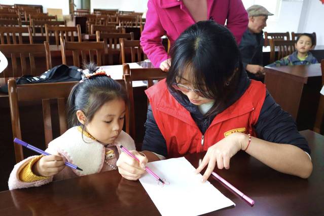活动伊始,志愿者以讲解与绘画创作相结合的方式,带领孩子们共同感受春天的美好。在志愿者的引导下,孩子们观察春日变化,用画笔自由创作,完成了一幅幅充满生机的画作。绘画环节结束后,志愿者为孩子们带来书法基础教学,讲解“横、撇、捺”等基本笔画的书写要领,耐心纠正笔顺与姿势,让孩子们在一笔一画中感受汉字之美。