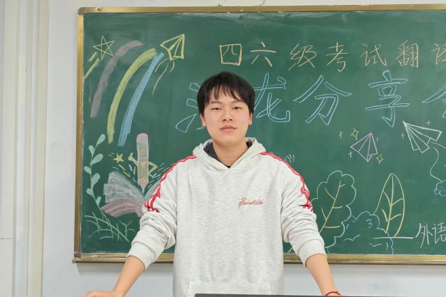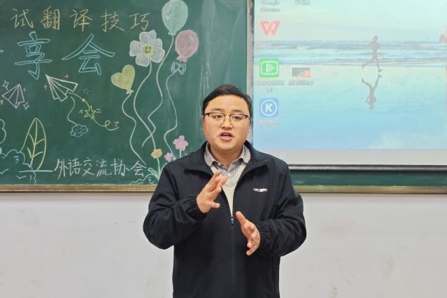 为助力广大考生高效备战全国大学英语四六级考试,3月25日,外语交流协会于诚意楼507举办了四六级考试翻译技巧沙龙,2023级英语非师范1班梅俊楠担任主讲人,辅导员高庭勇出席,全校学生积极参加。