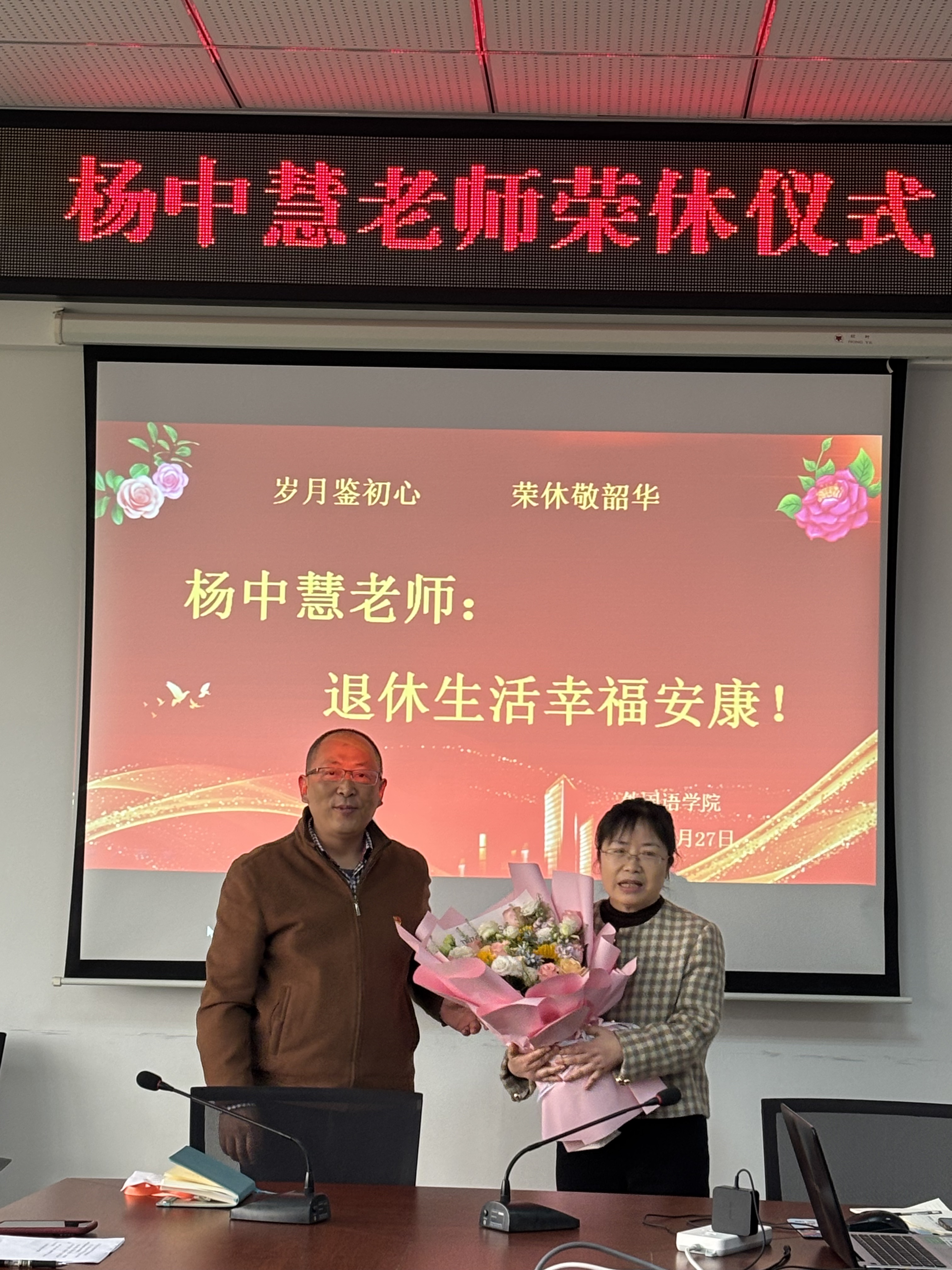 最后,李雪顺院长向杨老师献上鲜花,为荣休仪式划上圆满的句号。