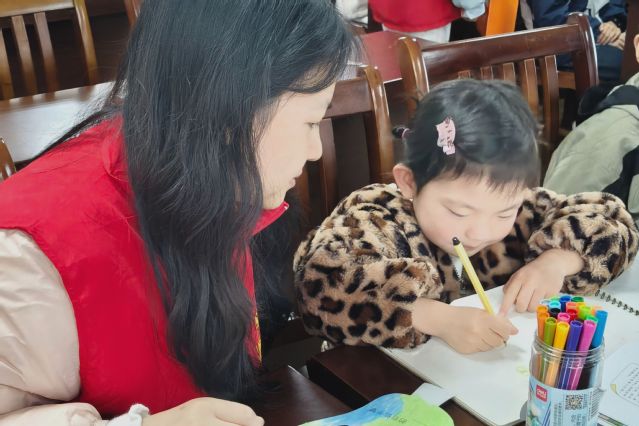 本次活动精心策划,设置书法教学、清明节文化科普、趣味故事分享三大特色环节。书法课以“书法探险”为主题,志愿者向孩子们介绍文房四宝,耐心指导正确的书写姿势。课程还设置了趣味互动游戏,充分调动孩子们的学习积极性。在清明节文化科普环节,志愿者生动讲解清明节的由来与传统习俗,阐释节日文化内涵并认真解答孩子们的疑问,助力大家深入感受传统节日的魅力。趣味故事分享环节,志愿者以《狐假虎威》为切入点,传递诚实守信、自立自强的道理,同时穿插简单英语单词教学,实现寓教于乐。
