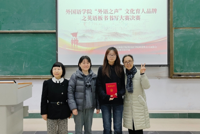 为提升学生英语综合运用与书写能力,3月27日上午,我院于诚意楼02阶梯教室举办了“外语之声”文化育人品牌之英语板书书写大赛。教师程琼、夏颖、龚瑜担任评委,2025级英语师范专业全体学生积极参加。