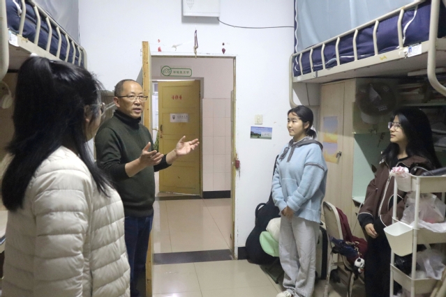 查寝过程中,针对不同年级学生,领导与辅导员分别展开针对性交流。李雪顺院长与邓巧走访了大二学生,李院长围绕寝室生活,强调了作息健康、寝室清洁及用电安全等要求,并细致询问学生日常学习与生活情况,他尤为关注学生的学习情况,学生们积极汇报了本学期的学习近况,主动分享自身规划。