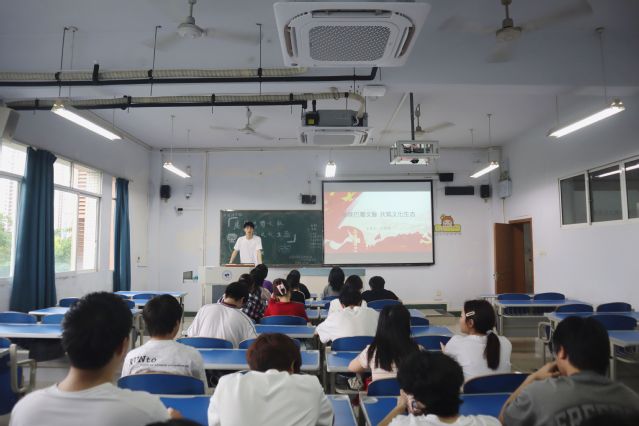 团会上,2025级日语师范2班代恩铭围绕“时代之问、知其然、文化瑰宝、青年担当、行动倡议”五大板块展开宣讲。他阐释了巴蜀文化生态保护区的核心内涵与建设意义,介绍了涪陵榨菜制作技艺、白鹤梁题刻、青羊古镇等本土文化瑰宝,引导学生认识非遗保护与文化传承的重要价值。结合青年学生的身份特点,主讲人明确了新时代大学生应具备的文化认同、创新实践、责任担当等核心素养,鼓励大家争做文化的学习者、实践者与传播者。